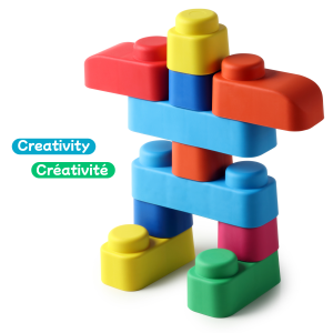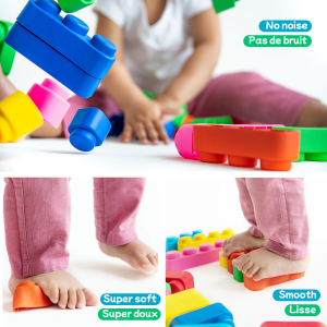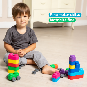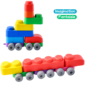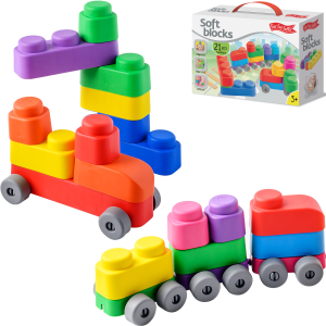 Far Far Land Stavebnice měkká. Všechny bloky jsou vyrobeny z měkkého bezpečného materiálu. Balení obsahuje 21 bloků a 16 koleček.