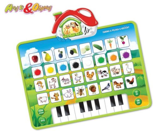 Dotyková podložka ze série vzdělávacích interaktivních hraček Hrej si + Objevuj. Vítej na farmě pejska a kočičky a užij si spoustu zábavy! Interaktivní podložka tě seznámí se zvířátky, s různými druhy ovoce a zeleniny. Naučí tě, jaké zvuky vydávají zvířátka nebo jakou barvu má mrkvička. Předveď své hudební umění na piánku (hrají bílé klávesy) a zahraj své oblíbené písničky. Získané znalosti ověř v jednoduchém kvízu.