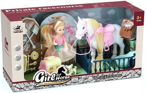 Součástí sady je koník, panenka, ohrada, pejsek, pelíšek a další doplňky. Výrobek je vhodný pro děti od 3 let.