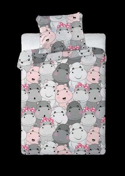 FARO Povlečení do postýlky Hrošíci 100/135, 40/60 Materiál: 100% Bavlna Rozměr: 1x 100/135, 1x 40/60 cm Bavlněné povlečení do postýlky, zapínání na zip, povlečení má z obou stran stejný motiv, viz. Foto, možnost praní na 40°C