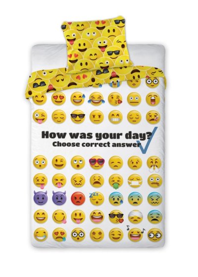 FARO Povlečení Emoji 140/200, 70/90 Materiál: 100% Bavlna Rozměr: 1x 140/200, 1x 70/90 cm Bavlněné povlečení na velkou postel, motiv peřiny je z každé strany jiný, zapínání na zip, možno prát na 40°C