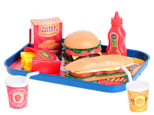 Pořiďte si domů svůj fast food a pohostěte své kamarády. Fast food set obsahuje bagetu, burger, limonády, nugetky, hranolky a podnos. Vhodné pro děti od 3 let.