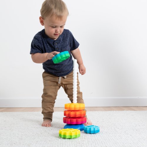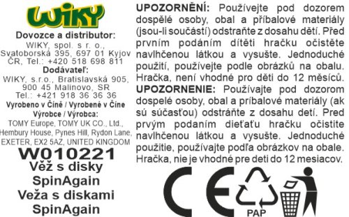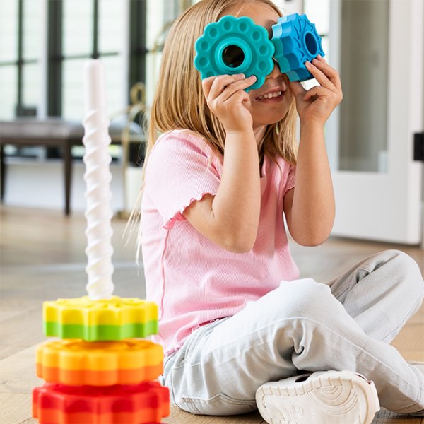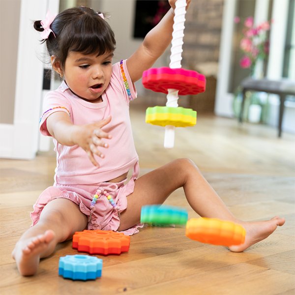 6 různých disků, se otáčejí dolů vývrtkou a skládají se, jak chcete; disky střídají tvary květů a hvězd, každý má 2 barvy Doporučený věk: od 1 let
