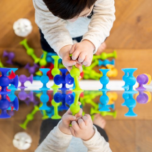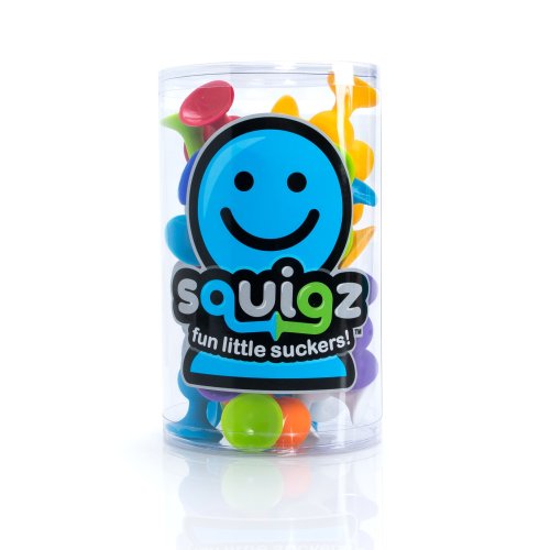 Fat Brain zábavné přísavky Squigz starter pack. Balení obsahuje 22 ks přísavek, různých barev, druhů, a velikostí. Velikost jednoho kusu je přibližně 6 cm v průměru.