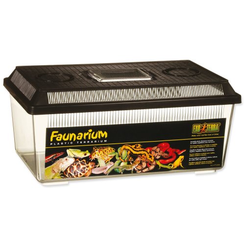 Přenosný průhledný plastový box pro terarijní zvířata.