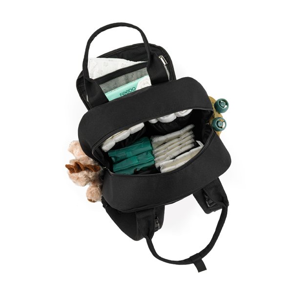 Náš přebalovací batoh FEEDO je multifunkční a voděodolný, je skvělou volbou pro každého rodiče! Velmi univerzální, ideální jak pro každodenní procházky s kočárkem, tak i na krátké výlety. Perfektně se hodí ke všem typům kočárků a skvěle vypadá na zádech jak maminky, tak tatínka. Batoh obsahuje 2 hlavní přihrádky, 2 termální kapsy, navíc 2 boční kapsy na láhev a ubrousky a speciální kapsu na multifunkční přebalovací podložku, do které se vejde tablet nebo notebook (až do 15,6”). Díky několika kapsám s hladkým zipem máte k obsahu tohoto batohu snadný přístup pouhou jednou rukou.
