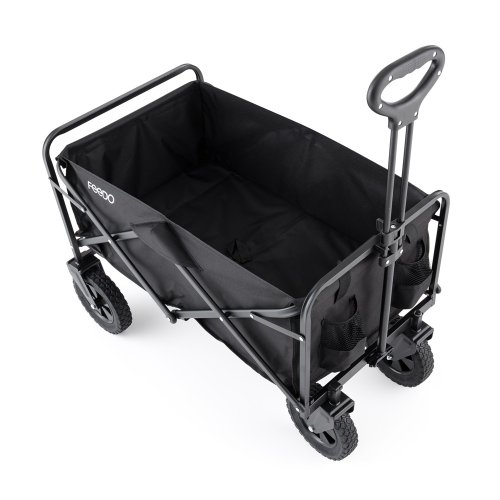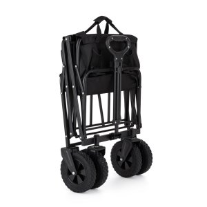 Praktický design a univerzálnost Tento vozík je navržen tak, aby vám ušetřil čas i energii. Díky své prostorné konstrukci s rozměry 91,5 x 49 x 75,6 cm nabízí dostatek místa pro všechny vaše věci, přičemž ve složeném stavu o rozměrech 57 x 20 x 77,5 cm se snadno vejde do kufru auta nebo do ukrytého koutku domácnosti či garáže.