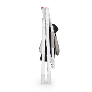 Lehký hliníkový rám zajišťuje snadné přenášení, zatímco široká základna poskytuje bezpečnou stabilitu. Voděodolné sedátko lze otřít vlhkým hadříkem a podnos lze mýt v myčce nádobí do 40 stupňů Celsia.