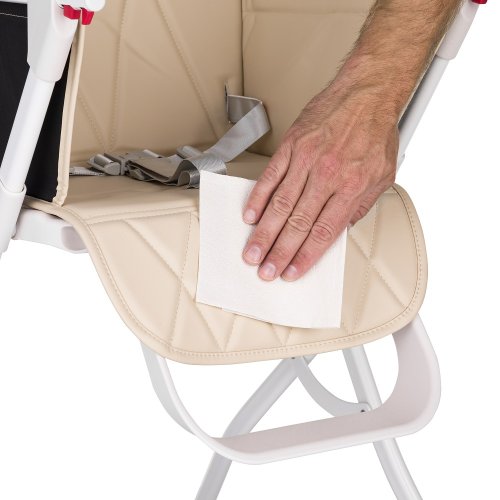 Navzdory kompaktním rozměrům je židle vybavena prostorným prošívaným sedadlem z PU, 3-bodovými bezpečnostními pásy, odnímatelným podnosem a nastavitelnou opěrkou nohou. Když vaše dítě dojí, židle se během několika vteřin bez námahy složí.
