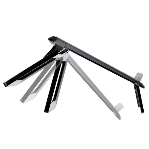 Bílo-šedě barevný stojan je určený pro notebooky do velikosti 17" a umožňuje nastavení úhlu a výšky v 7 pozicích.