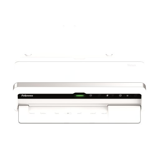 Profesionální laminátor Fellowes Venus vhodný pro použitý ve velké kanceláři umožňující laminaci všech druhů hladkých papírů, včetně fotek od formátu vizitky po formát A3. Komfortní obsluha díky unikátní funkci AutoSense. JIŽ ŽÁDNÉ UŽIVATELSKÉ NASTAVOVÁNÍ PARAMETRŮ. Provozní HODNOTY stroje jsou NASTAVENY AUTOMATICKY po vložení laminovaného dokumentu do stroje. Umožňuje laminování dokumentů do formátu A3 laminovací fólií s tloušťkou 80 až 250 mic, maximální tloušťka dokumentu 0,8 mm. Díky 6-ti laminovacím válcům zajišťuje vysoce kvalitní výsledky laminace. Laminování za 30-60 sekund od zapnutí, rychlost laminace až 218 cm/ min - dokument formátu A4 zalaminuje za cca 10 sekund.