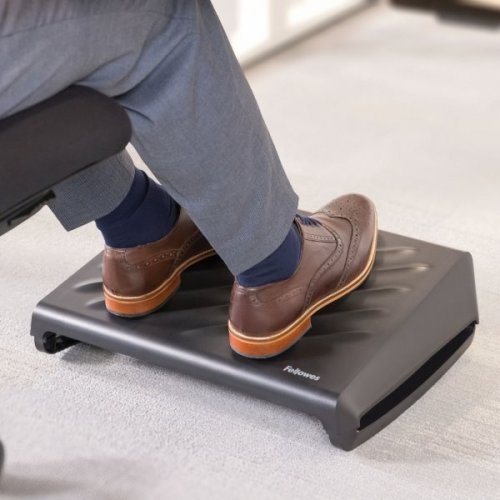 Podložka pod nohy Fellowes BREYTA v černém provedení pro ergonomii dolních končetin během sezení. Je dostatečně prostorná, takže na ni pohodlně umístíte obě chodidla. Současně je dostatečně kompaktní pro snadné přenášení a umístění. Uplatní se tak nejen při práci v kanceláři, ale také na home office. Při dlouhotrvající práci na PC spojené se sezením u stolu potlačuje strnutí nohou a podporuje přirozenou polohu celých nohou.
