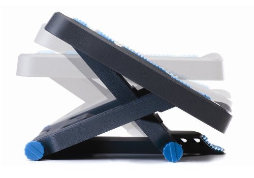 Podpěra chodidel zlepšuje držení těla, oběh krve a pohodlí při práci. Inovativní pryžový masážní povrch regeneruje unavená chodidla a snižuje stres. Snadným nastavením výšky a náklonu až 25° docílíte optimální polohy opěrné plochy.