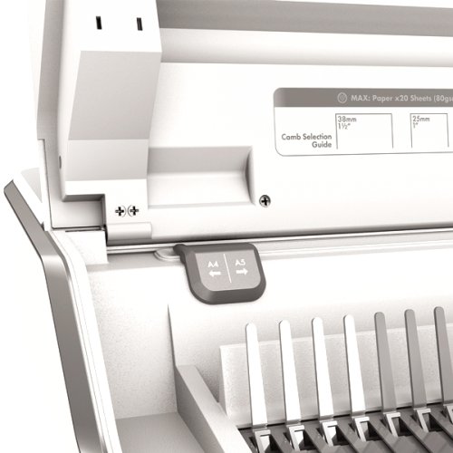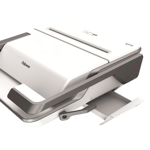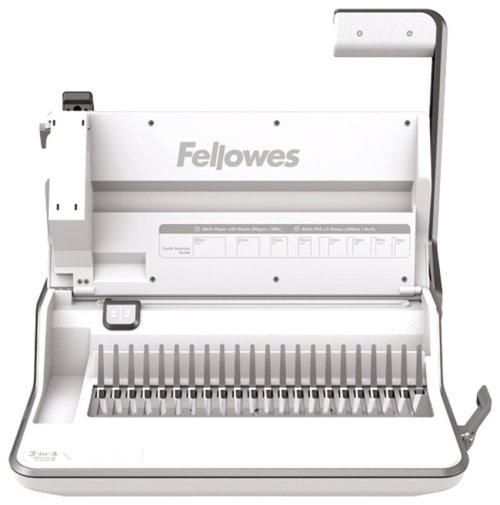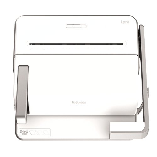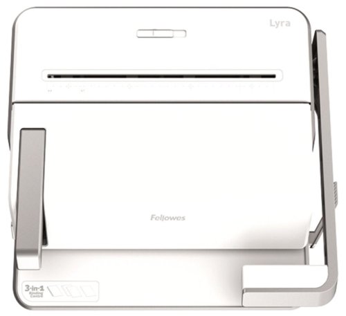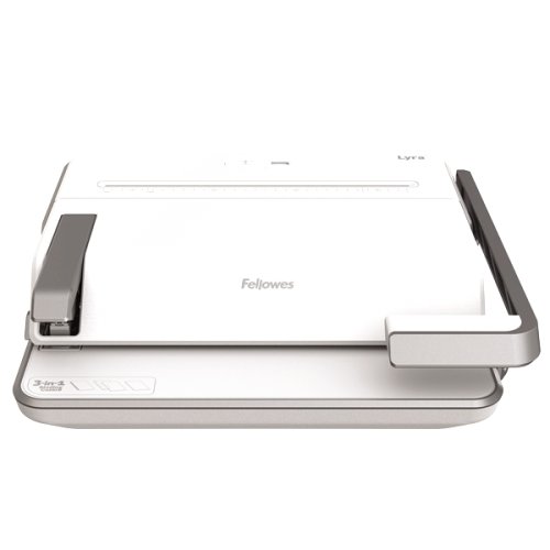 Fellowes Lyra 3v1 představuje vázací, sešívací a děrovací stroj v jednom zařízení. Nabízí děrovací kapacitu až 20 listů a kapacitu vazby až 300 listů. Vkládání děrovaných listů shora zajišťuje bezchybnou perforaci. Oddělená děrovací a vázací páka pro průběžné vkládání děrovaných listů do plastového hřbetu výrazně zefektivňuje práci. Potěší také možnost opakovaného rozvázání dokumentu pro případné opravy. Děrovat lze také listy určené k založení do pořadače, a to buď dvěma, nebo čtyřmi otvory. Vestavěná sešívačka EasyPress s nastavitelnou sešívací hloubkou umožňuje sešít až 30 listů. Součástí balení je 1000 sešívacích sponek.