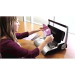 Oddělená děrovací a vázací páka pro průběžné vkládaní děrovaných listů do plastového hřbetu výrazně zefektivňuje práci. Vkládání děrovaných listů shora pro snadné setřesení a tím bezchybnou perforaci.