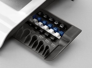 Vázací stroj pro děrování až 15 listů najednou. Vkládání děrovaných listů shora umožňuje bezchybnou perforaci. Oddělená děrovací a vázací páka pro průběžné vkládání děrovaných listů do plastového hřbetu výrazně zefektivňuje práci. Stroj je vybaven zásobníkem na uložení hřbetů a integrovanou měrkou pro správnou volbu průměru.