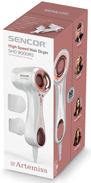 Fén na vlasy SHD 9000RS je vybaven moderním vysokorychlostním BLDC motorem, který se pyšní tichým chodem, dlouhou životností a výkonem až 90 000 otáček za minutu. Tento motor vytváří silný proud vzduchu o rychlosti až 75 km/h, díky čemuž výrazně zkracuje dobu sušení vlasů. Přístroj nabízí tři úrovně proudění vzduchu – jemné, střední a intenzivní – a čtyři nastavení teploty, včetně funkce studeného vzduchu pro závěrečné zafixování účesu. Silná ionizace napomáhá k dosažení hebkých, hladkých a lesklých vlasů bez krepatění. Součástí balení jsou dva magnetické stylingové nástavce pro pohodlnou manipulaci a přesné tvarování vlasů. Odnímatelný filtr usnadňuje údržbu a čištění přístroje. S příkonem 900 W, teplotním rozsahem 20–56 °C a nízkou hlučností 75 dB představuje tento fén kompaktní a efektivní řešení pro každodenní úpravu vlasů.