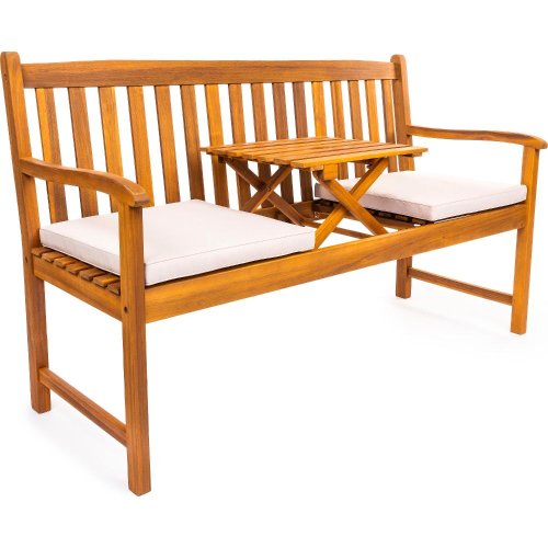 Rozměry 62 x 150 x 91 cm Pohodlné sezení ve středu lavice integrovaný stoleček Snadná montáž Vhodné pro venkovní i vnitřní použití Vyrobeno ze dřeva tropické Akácie