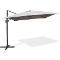 Závěsný slunečník o rozměru 3x3 m Světlešedý potah z 100% polyesteru 250 g Materiál: hliník /ocel/polyester 8 ocelových žeber 14 × 24 mm Úhlopříčka 4,2 m Možnost otočení o 360 ⁰ dle potřeby Možnost nastavení úhlu sklonu Obdélníkový profil stojné nohy 5,3 cm x 7,6 cm Pro venkovní použití Látka na potahu je ošetřena ochranným nátěrem proti UV 50