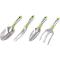 Sada 4 ks ručního nářadí Sázecí lopatka, univerzální lopatka, hrabičky, vypichovák plevele Vysoká odolnost Materiál: hliník Rozměry: délka 1 ks nářadí 27 cm