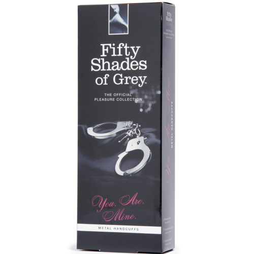 Fifty Shades of Grey - kovová pouta You.Are.Mine. ve stříbrném provedení mají nastavitelnou velikost, v balení se 2 klíčky.