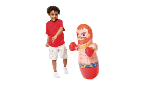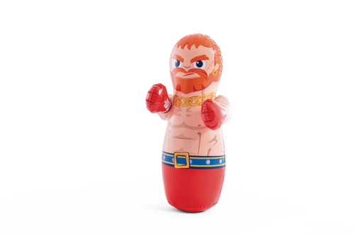 Nafukovací boxovací panák. Pro děti od 3 let. Rozměry vyfouknutého výrobku: Zrzavý Boxer 91 cm x 56 cm, Blond Boxer 94 cm x 74 cm.