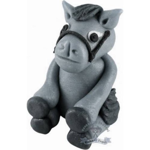 Figurka na dort kůň šedý 3D, 60 g. Vyrobena z kokosové hmoty.