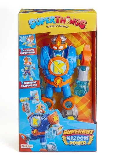 Figurka Robota SuperThings – perfektní hračka pro kluky, kteří milují figurky ze světově oblíbené série! Nebudou chybět vzrušující atrakce a mnoho hrdinských akcí. Energický robot SuperThings Superbot Blue Kazoom Power je připraven bránit město Kaboom a vy mu musíte pomoci! Výhodou je jistě zajímavé řešení, které umožňuje namontovat SuperThing nebo Kazoom Kid v horní části figurky. Pak ho jen ovládejte, aby svou zbraň používal moudře. Je schopen boje na zemi i ve vzduchu díky svým křídlům, která dokáže v případě potřeby roztáhnout. Součástí balení je Superbot Blue Kazoom Power a exluzivní Kazoom Kid s příslušenstvím.