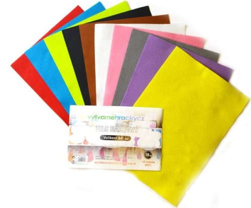 Filc nebo-li plsť je netkaná textilie, kterou můžete použít ke stříhání, lepení, šití, vyšívání. Můžete z něj s dětmi vyrábět přáníčka, záložky, polštářky, figurky, loutky, ozdoby či šperky, polepovat krabičky a dále jej zdobit různými kamínky či motivy. Tvořte co vás napadne! Filc - 10 ks mix barev, formát A4, 180g
