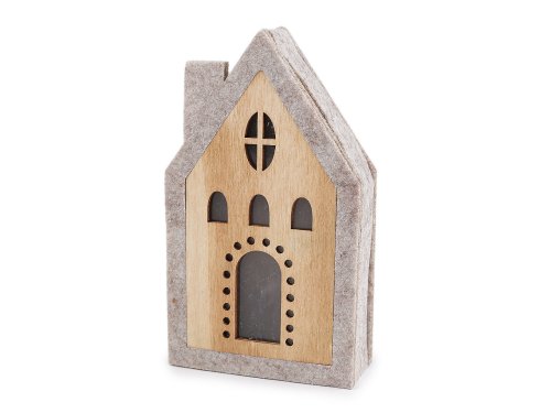 Svítící domeček je vyrobený z kombinace dřeva a pevného filcu. Svítí příjemným teplým světlem, které vypadá jako hvězdička. Dodá hřejivou a poklidnou atmosféru do každého interiéru. Baterie (2x CR2032) jsou součástí balení.
