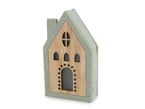 Svítící domeček je vyrobený z kombinace dřeva a pevného filcu. Svítí příjemným teplým světlem, které vypadá jako hvězdička. Dodá hřejivou a poklidnou atmosféru do každého interiéru. Baterie (2x CR2032) jsou součástí balení.