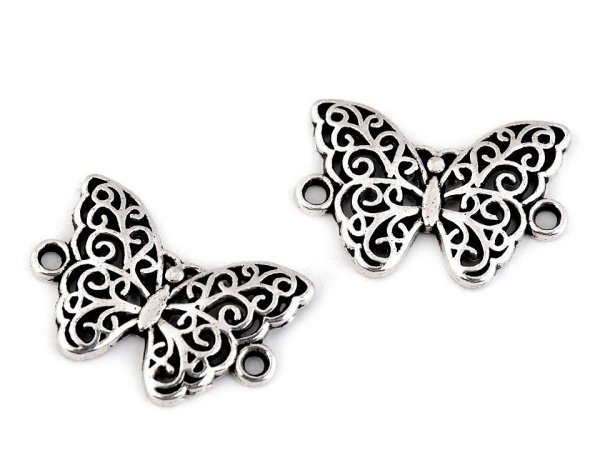 Filigránový dekorační našívací motýl, mandala, srdce, strom života - platina motýl (20 ks)
