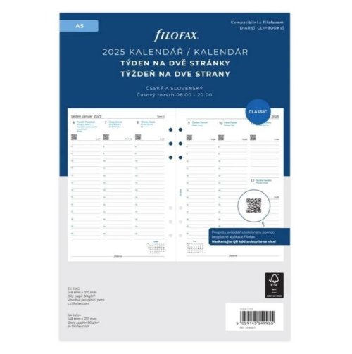 FILOFAX kalendář 2025 A5, týden/2 str, linky, ČJ+SJ