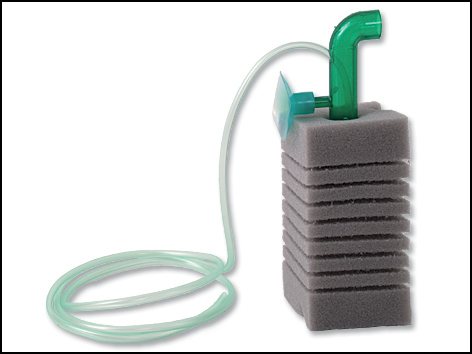 Molitanový filtr do akvária se vzduchovací hadičkou.