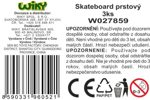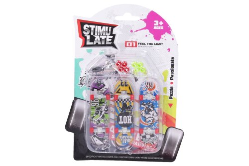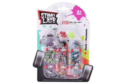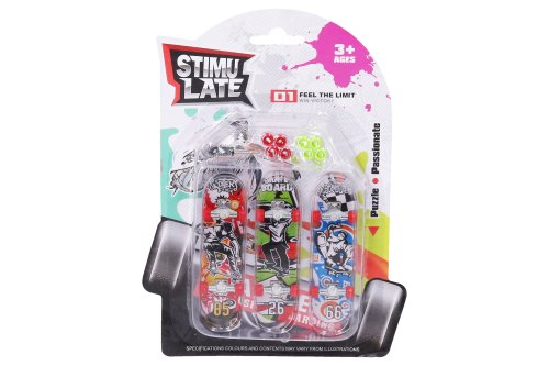 Fingerboard sada 3 ks. Obsah balení - 3 kompletní fingerboardy, 2x sada barevných koleček, náhradní šroubky a šroubováček. Rozměry skateboardu 9,5x2,5x2 cm.