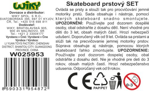 Fingerboard sada s náhradními díly. Délka prkna 9,5 cm. Obsah balení - 1xkompletní fingerboard, 2 náhradní trucky, 8 náhradní šroubků, náhradní prkno, náhradní grip tape, sada šroubováčků na montáž. Více variant.