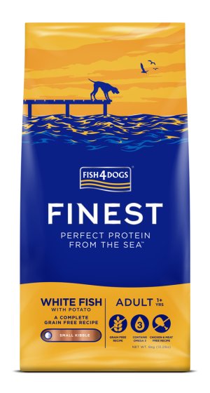Granule pro dospělé psy s obsahem ryby s bramborami jsou vyrobeny ze sezónních druhů bílých ryb ulovených v bohatých lovištích severního Atlantiku. Vyvážené suché krmivo bez obsahu obilovin, obsahuje omega 3 mastné kyseliny. Granule pomáhají s trávením a podporují celkové zdraví střev.