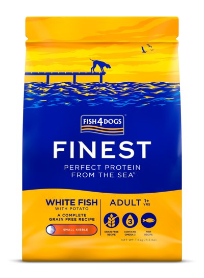 FISH4DOGS Granule malé pro dospělé psy Finest bílá ryba s bramborami 1,5 kg, 1+