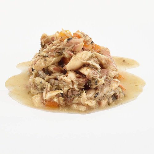 Složení: makrela (50%), špenát (8%), mrkev (8%), tapiokový škrob Analytické složky: Hrubý protein 8,5%, vláknina 0,8%, obsah tuku 1%, popel 1,7%, vlhkost 88%