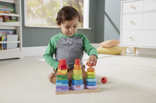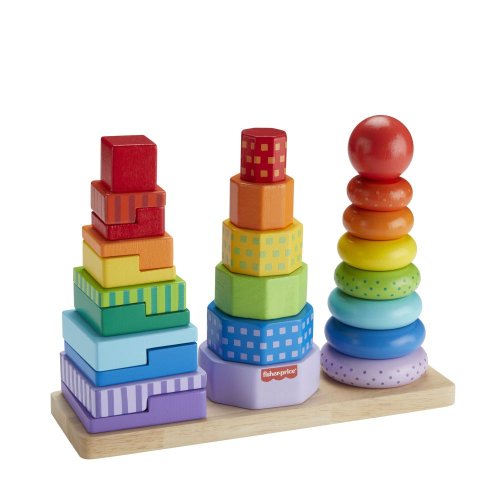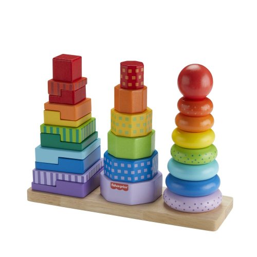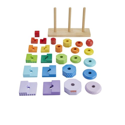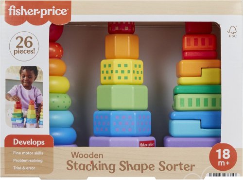 S dřevěným třídičem tvarů pro batolata od Fisher-Price® si užijete trojnásobnou zábavu. Tento set obsahuje snadno uchopitelné dřevěné kroužky, osmiúhelníky a dvoudílné geometrické obdélníky, které lze třídit a skládat na základnu. Tato skládací hračka pro děti předškolního věku je vyrobena ze dřeva z dobře obhospodařovaných lesů s certifikátem FSC®. (FSC C004225, 2021)