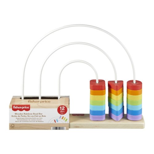 Dřevěné korálkové bludiště duha od Fisher-Price umožňuje malým dětem objevovat tvary, barvy a základy počítání prostřednictvím zábavné hry s posouváním korálků. Vyrobena je ze dřeva pocházejícího z lesů s certifikací FSC (FSC-N004566) a je ozdobena netoxickými, vodou ředitelnými barvami. Tato klasická didaktická hračka obsahuje 21 jasně barevných korálků ve 3 různých tvarech, které děti mohou uchopit a posouvat tam a zpět po tyčkách. Hračka pomáhá během hry posilovat jemnou motoriku, včetně koordinace ruka-oko. Barvy a vzhled výrobku se mohou lišit.