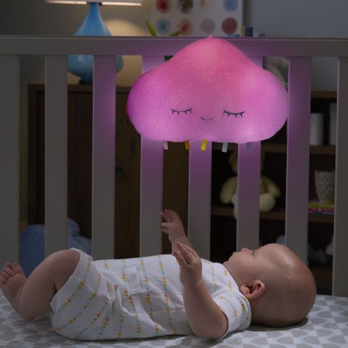 Usínáček obláček od Fisher-Price® je měkoučký kamarád, který pomáhá ukonejšit vaše děťátko, když se učí spát v posteli pro velké děti místo v postýlce. Obláček se snadno přichytí k většině dětských postýlek a nabízí seznam k přehrávání jemné hudby Ready, Settle, Sleep™, který se synchronizuje s vícebarevnou světelnou projekcí. Hudbu, uklidňující zvuky přírody, hlasitost a barvu světla můžete snadno přizpůsobit, abyste našli kombinaci, která vašemu malému nejlépe vyhovuje! Super měkké látky, jemná světla měnící barvu a uklidňující hudba a zvuky zapojují smysly vašeho dítěte a pomáhají pro něj vytvořit uklidňující prostředí. Pomáhá udržovat pravidelný spánkový režim při přechodu z postýlky do vlastní velké dětské postele.