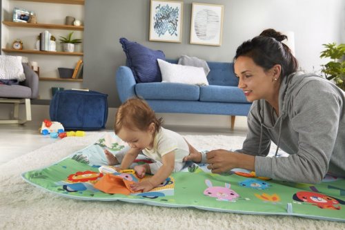 S hrací dečkou Extra Big Adventures™ od Fisher-Price® se můžete sbalit a vyrazit vstříc vzrušujícím "venkovním" dobrodružstvím. Tato extra velká podložka s motivem kempování měří na délku 152 cm, což malým táborníkům poskytuje spoustu prostoru k prozkoumávání tábořiště a zapojení se do hry s hračkami, včetně chrastítka s kompasem, vysoce kontrastního zrcátka, cinkátka a kousátka s mráčky bez BPA. Podložka, kterou lze prát v pračce, se snadno sroluje, takže ji můžete vzít s sebou, kamkoli se s dítětem vydáte! Velký prostor na hraní a zábavné hračky pomáhají udržet děti při hraní na bříšku a pomáhají rozvíjet sílu krku, středu těla a jemnou motoriku.