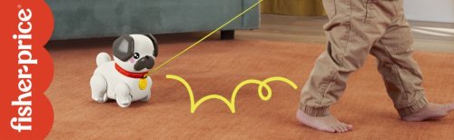 Chodící mopslík od Fisher-Price® je ideální pro malé milovníky pejsků. Tato tahací hračka pro batolata je roztomilý zvířecí miláček, kterého mohou děti samy "venčit". Jakmile děti zatáhnou za vodítko, jeho nohy a uši se začnou pohybovat a mopslík vydává líbivý "štěkavý" zvuk, který děti povzbuzuje k další chůzi a pomáhá posilovat jejich hrubou motoriku.