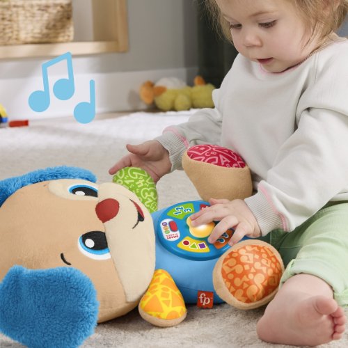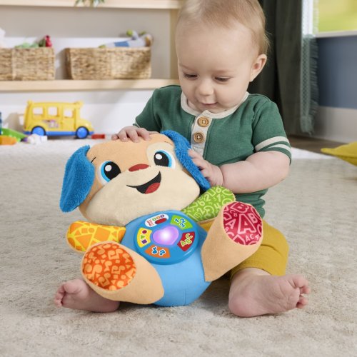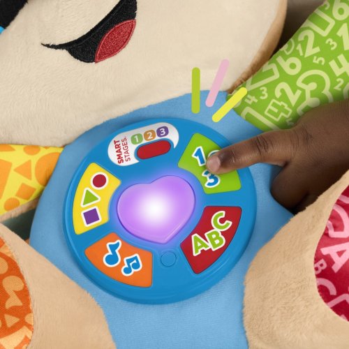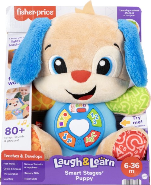 Mluvící pejsek Smart Stages® z řady Fisher-Price® Směj se a Poznávej!® je příjemná plyšová hudební hračka, která seznamuje děťátko s abecedou, tvary, prvními slovy a dalšími prvky! Děti mohou stisknout 5 tlačítek na bříšku pejska a sledovat, jak se jeho srdíčko rozsvěcuje různými barvami, zatímco hraje více než 80 písniček, zvuků a frází. Díky více než 12 originálním písničkám a 3 úrovním učení Smart Stages®, které rostou spolu s dítětem od kojence až po batole, se Mluvící pejsek jistě stane nejlepším kamarádem vašeho děťátka.