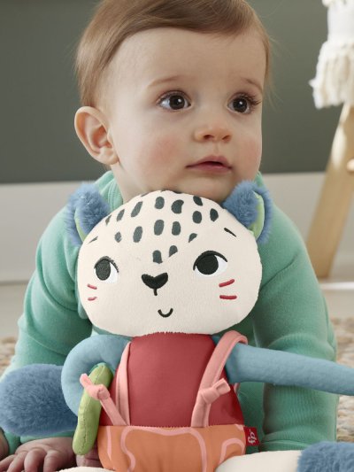 Dětská smyslová hračka Sněžný leopard od Fisher-Price® je inspirovaná zvířaty, na která upozornil Světový fond na ochranu přírody, používá látku vyrobenou z 95 % z recyklovaných plastů a je dodávána v obalu s certifikátem FSC, který podporuje odpovědné lesní hospodářství. Tato plyšová hračka nabízí saténové látky, měkké chlupaté vlnitě botičky a vysoce kontrastní barvy, které rozvíjejí smysly vašeho děťátka. Zábavné aktivity pro rozvoj jemné motoriky zahrnují natahovací nožičky, posuvný podbřišník a měkký posuvný kroužek na ruce. Hračka nejen zábaví, ale i poskytuje vašemu děťátku pocit bezpečí doma i na cestách, a lze ji prát v pračce.