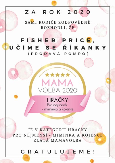 Otevřete svému dítěti svět zábavy a učení s hrající knížkou Učíme se říkanky z řady Směj se a Poznávej! od Fisher-Price®! Pouhým otočením stránky spustíte oblíbené dětské písničky a zároveň si můžete prohlížet barevné obrázky pejska a jeho sestřičky. Zatímco vy s vaším malým tanečníkem dobýváte parket v rytmu skvělé hudby, on se zároveň učí písmenka, počítání, první slůvka, čísla, tvary a další důležité věci. Když děti stisknou svítící tlačítka ABC a 123, uslyší písmena a čísla odpovídající příslušné stránce. Díky tomu si čtení zamilují! Stisknutím svítícího tlačítka „Tvary a barvy“ děti spustí krátké věty, které jim pomůžou naučit se všechny různé barvy a tvary. Stránky, které se snadno otáčejí, pomůžou dětem rozvíjet jemnou motoriku.
