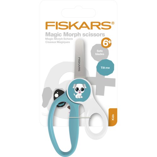 Dětské nůžky Magic Morph s měnícím se obrázkem štěňátka dělá střihání zábavné. Čepele se zaoblenými špičkami jsou při střihání bezpečné. Větší oko držadla a ergonomické oko na palec přirozeně a pohodlně sednou na dětskou ruku. Úhel otevření čepelí je optimalizovaný, aby se nůžky dobře ovládaly. Dětské nůžky Magic Morph, štěně jsou vhodné pro děti od 6 let.