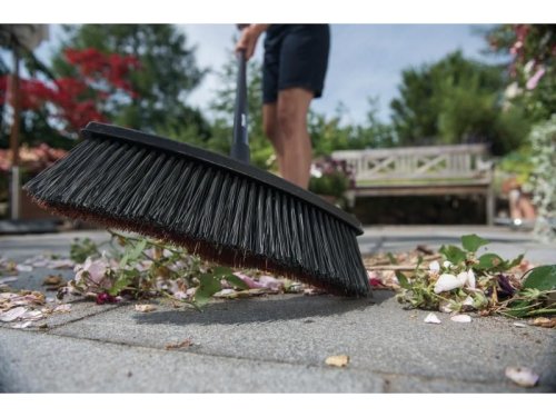 Středně velké univerzální koště, určené pro čištění chodníků, cestiček a dalších zpevněných povrchů na zahradě Hlava koštěte je tvarovaná do oblouku, díky tomu při zametání neunikne žádný nepořádek