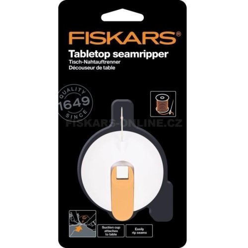 Stolní párač švů Fiskars s přísavkou pro snadné párání švů <br> Manipulujte s látkou oběma rukama <br> Kryt párače lze uložit pod upínací páku